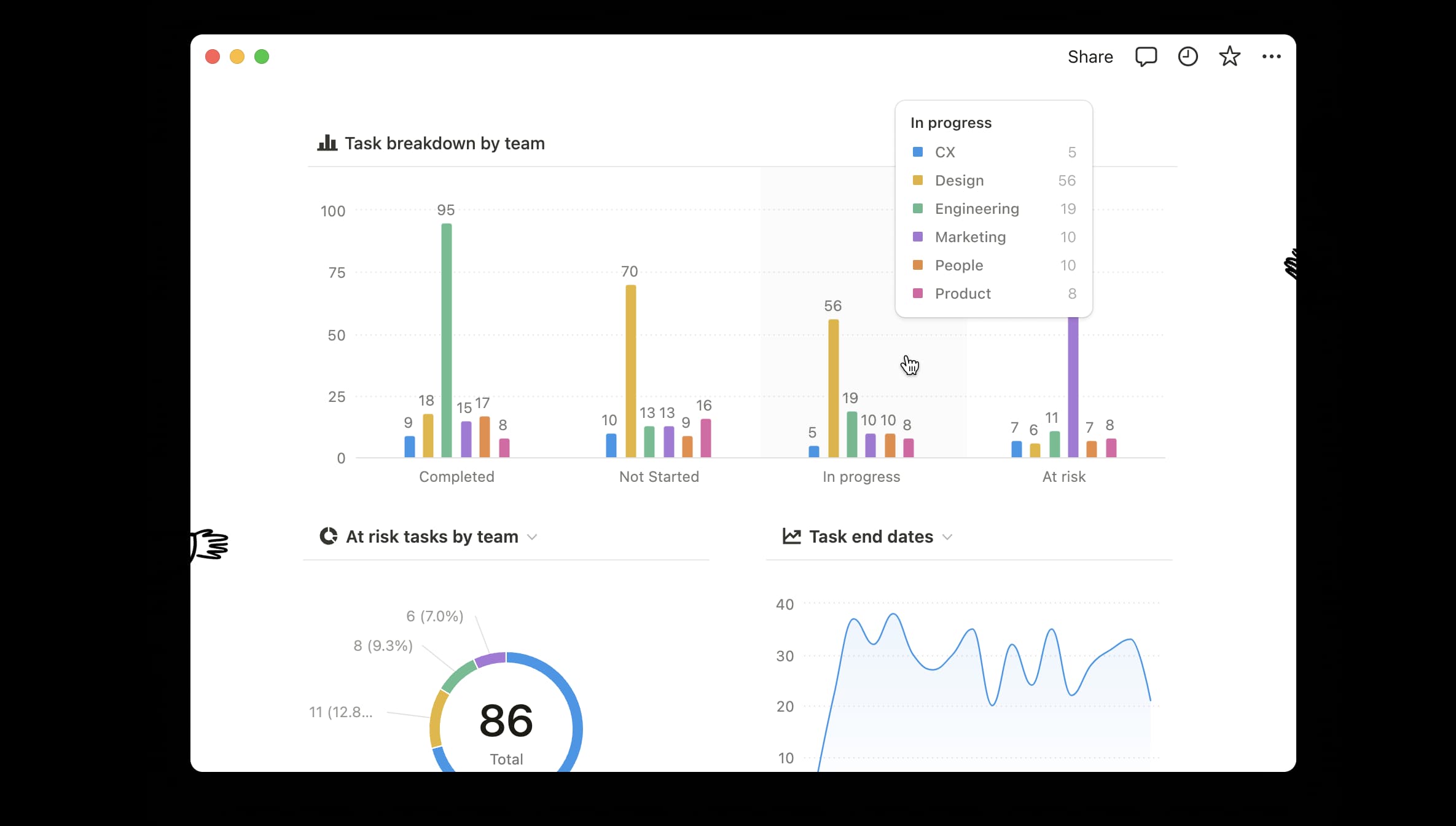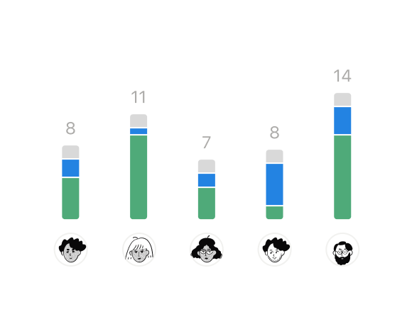 날짜, 팀, 사람 등 원하는 기준에 따라 작업을 시각화할 수 있어요.